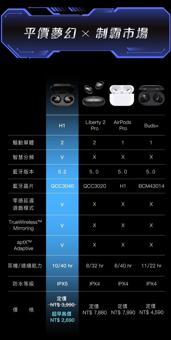 • 品名:SoundPeats Truengine H1 圈鐵雙單體真無線藍牙耳機