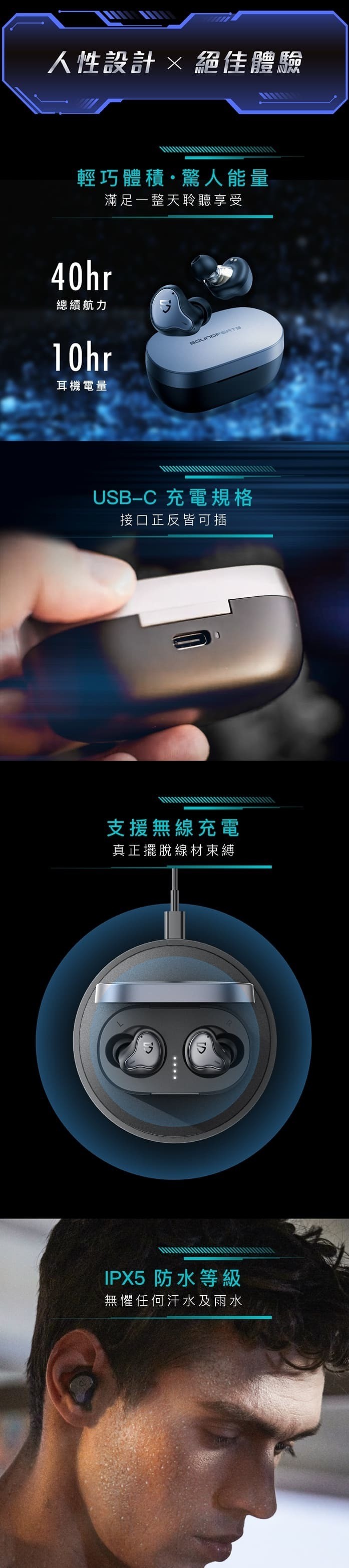 • 電池容量:耳機 60mAh,充電艙 500mAh