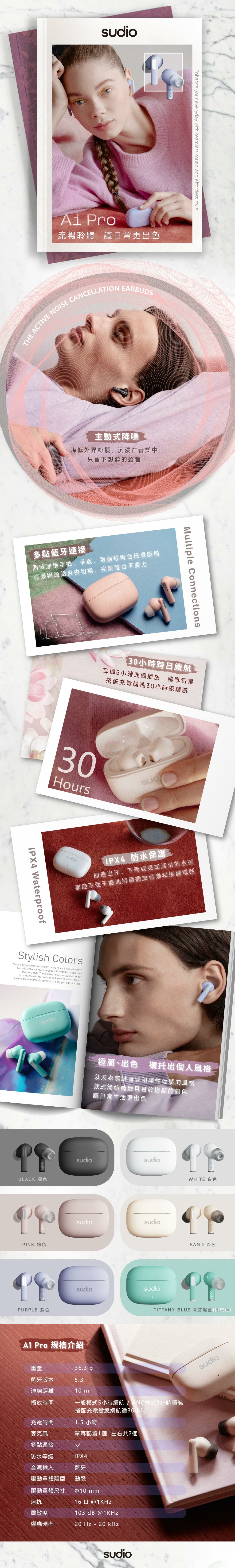 【SUDIO】 A1 Pro 真無線藍牙耳機 六色