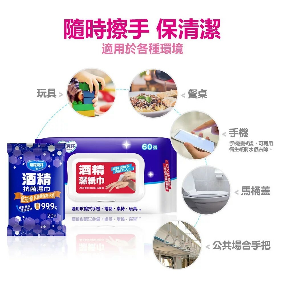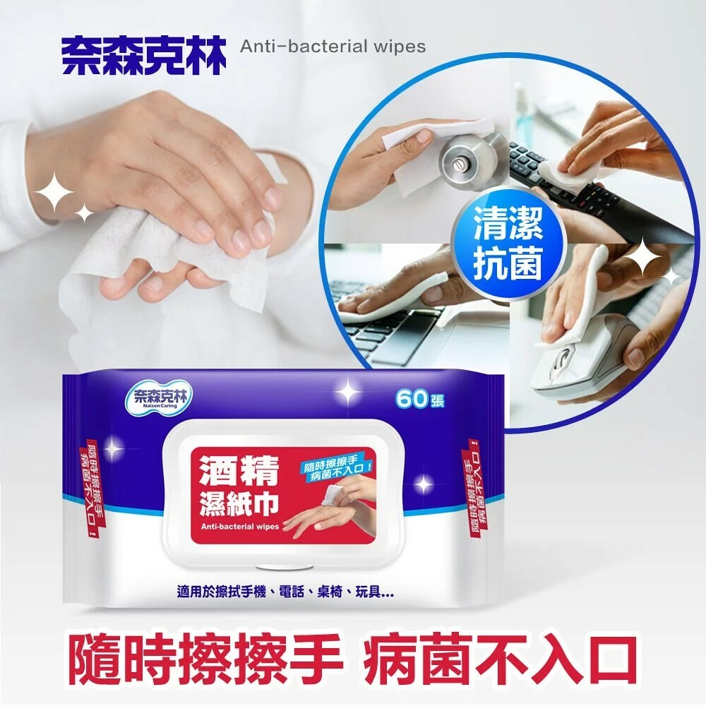 【奈森克林】酒精抗菌濕紙巾 60抽(掀蓋)*2