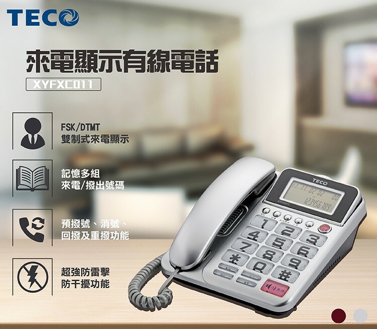 【TECO東元】來電顯示有線電話 XYFXC011 兩色