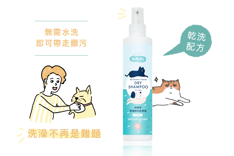 .Hururu 柿單寧亮澤順毛乾擦澡,無需水洗即可帶走髒污