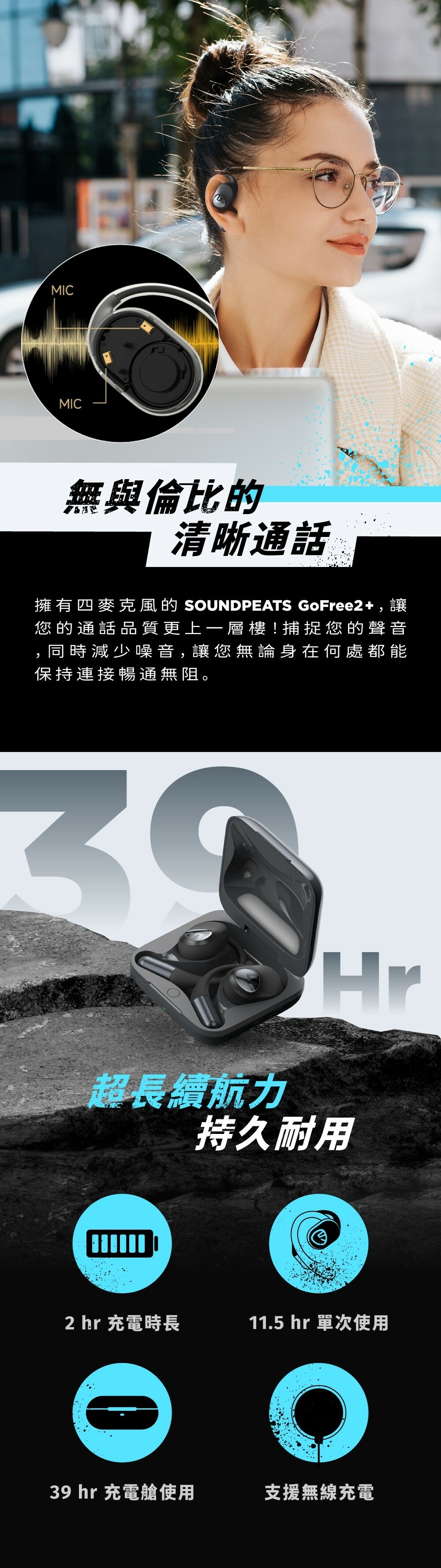 ● 充電時間:耳機1.5hr、充電艙2hr