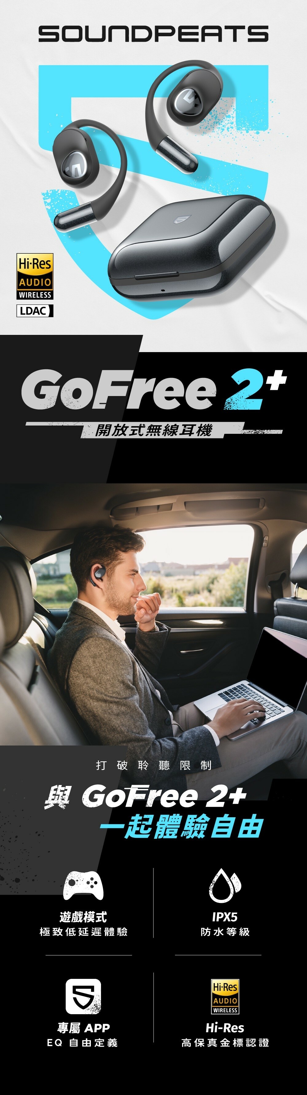 【SoundPeats】GoFree2+ 開放式無線耳機