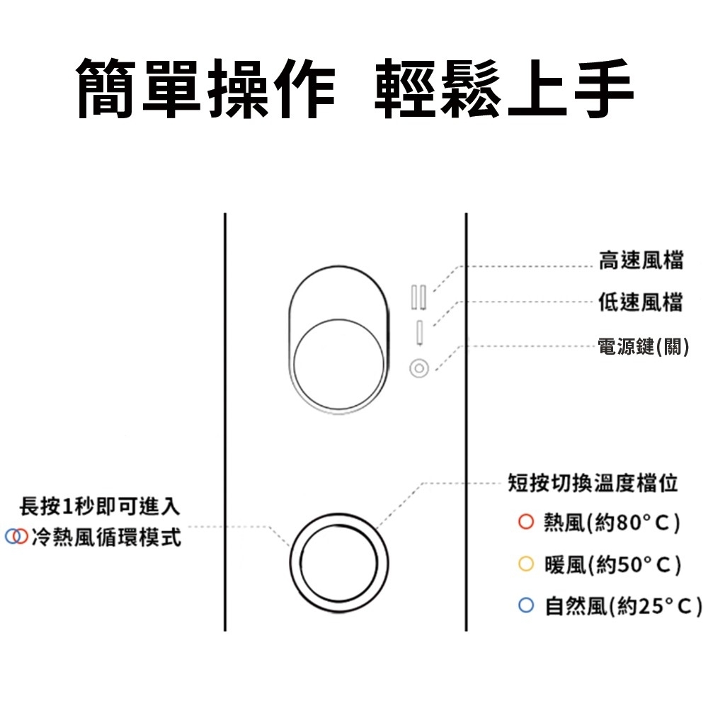 • 風溫檔位:4檔風溫(含冷熱風交替模式)