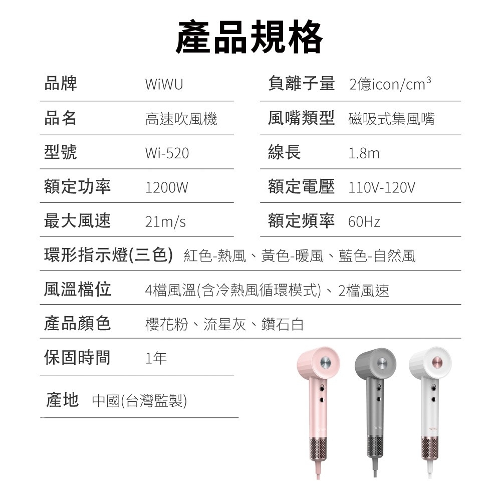 【WiWU】 負離子高速吹風機 WI-520 三色