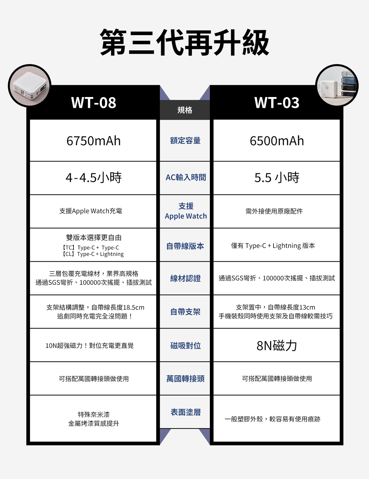 ・ 額定容量 6500mAh 增至 6750mAh