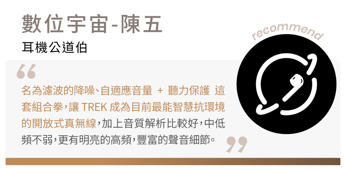 開放設計 x 音質細膩 x 低頻震撼 = TREK!