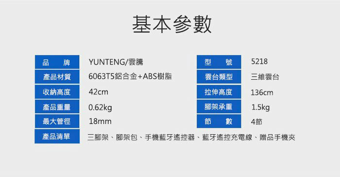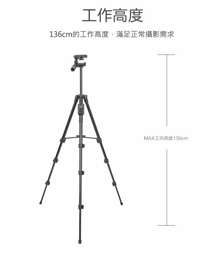 ●承重約1.5kg/收縮為42cm/全展開為136cm