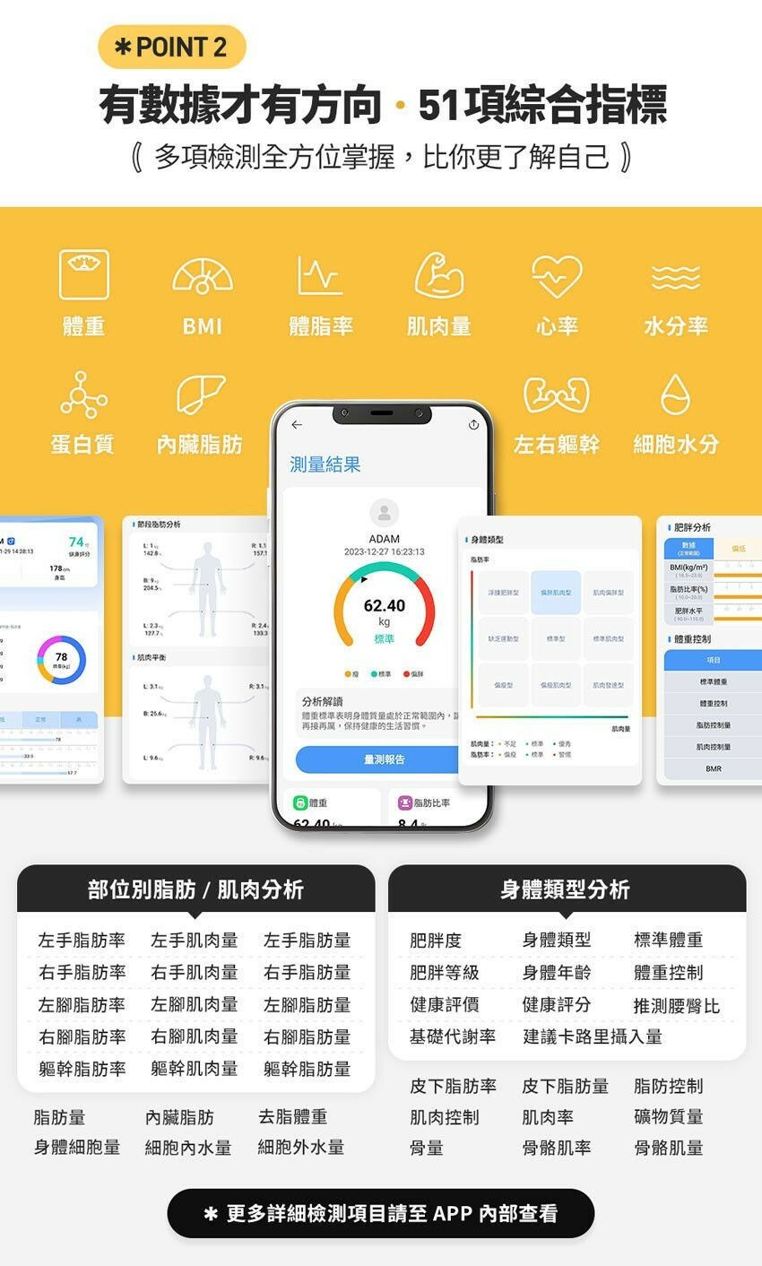 ● 51 項綜合指標檢測,提供數據解釋及專屬建議