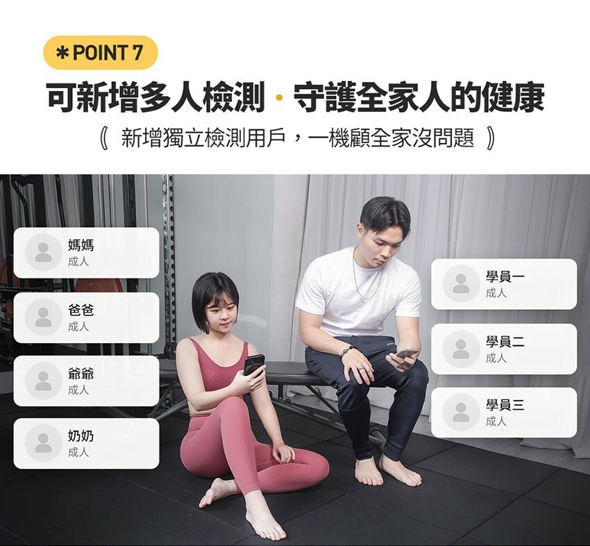 ● 可新增多台手機共享體脂計,保護個人數據隱私
