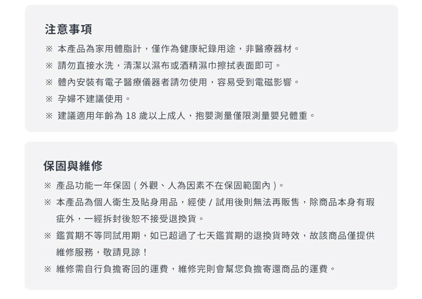 -商品屬於衛生用品,拆盒後皆無法做退換貨;除非新品不良外,一律無保固。